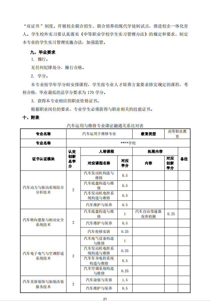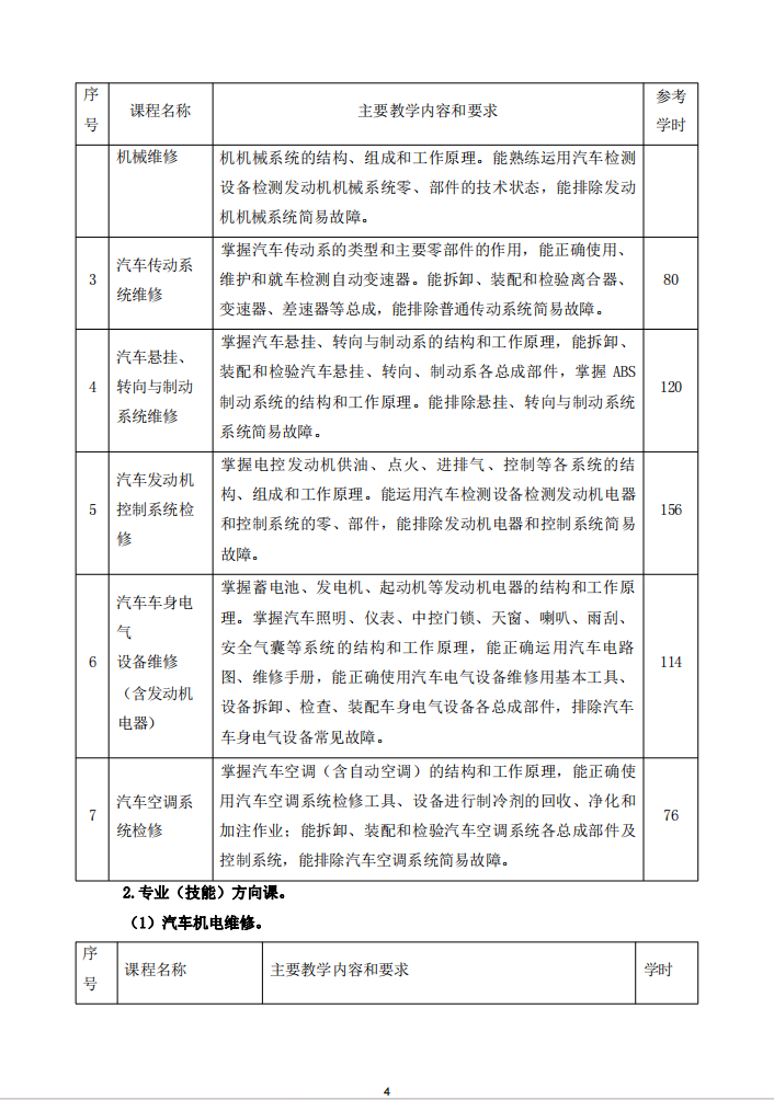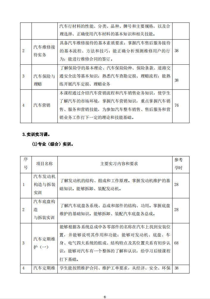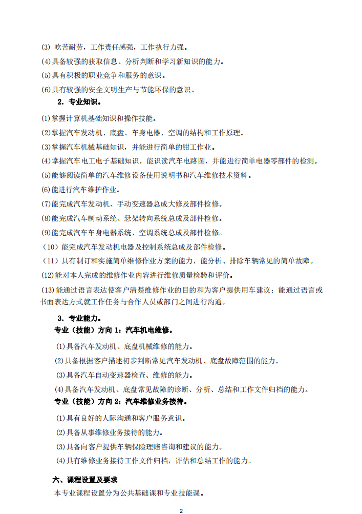 汽车运用与维修专业人才培养方案(1) 2024-7-6 本文被阅读 8157 次